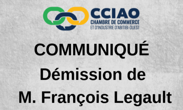 La CCIAO réagit à l’annonce de la démission de M. François Legault et réclame une représentation claire pour l’Abitibi-Ouest. La Sarre, le 14 janvier 2026 — La Chambre de commerce et d’industrie de l’AbitibiOuest (CCIAO) prend acte de l’annonce de la démission de M. François Legault à titre de premier ministre du Québec. Si cette décision marque un tournant politique important, la CCIAO déplore qu’aucune mention n’ait été faite de l’AbitibiTémiscamingue, et plus particulièrement de l’Abitibi-Ouest, lors de son allocution publique, et ce, malgré son rôle de ministre responsable de la région.